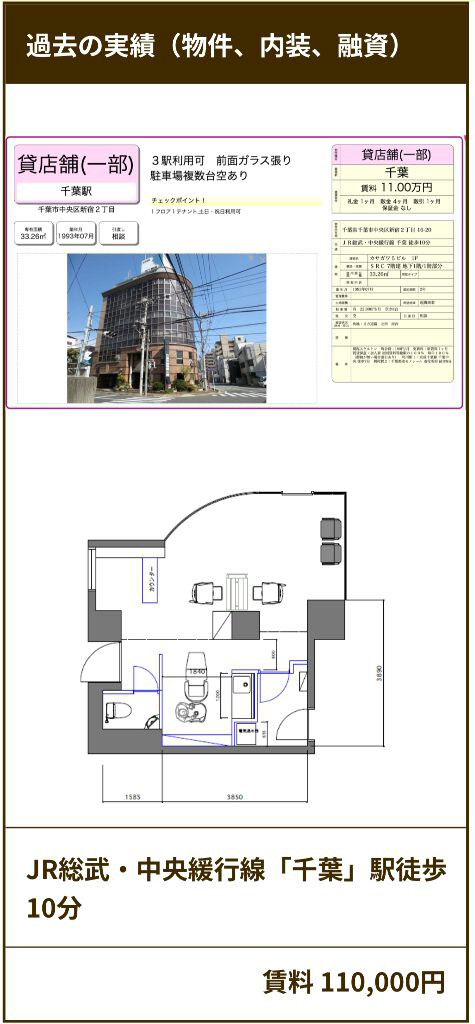 私の希望から物件のリスト出しをはじめ、内見・現地調査・ご契約まで迅速にサポートして下さいました。物件契約と並行して、融資調達のサポート、内装打ち合わせも進めて頂いて、何も分からなかった私にとって不安が安心に変わり、独立開業の形も徐々に明確になっていきました。